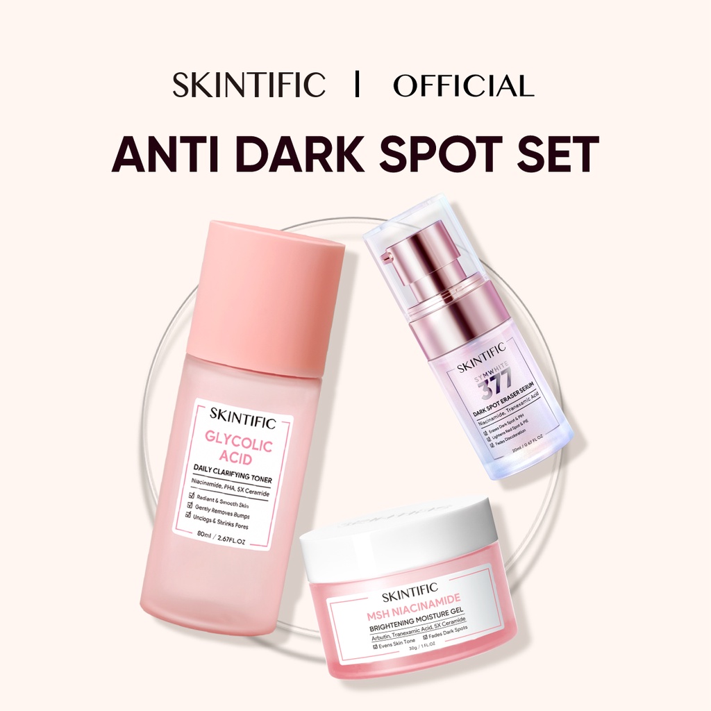 Produk [Ready Stock] SKINTIFIC Paket Skincare Set Anti Spot Serum Symwhite 377 Brightening Serum + MSH Niacinamide Brightening Moisture Gel + Toner Glycolic Acid Mencerahkan Kulit ini sedang Diskon 31%, Total dari awal dijual Produk ini dan Variannya terjual total 3767 buah.