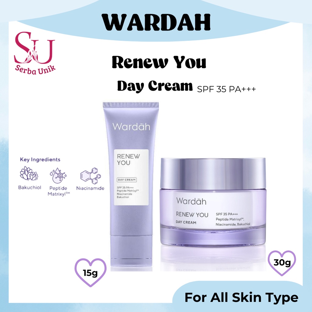 Harga Wardah Renew You Anti Aging Day Cream SPF 35 PA+++ 9g | 15g | 30g saat ini masih murah, kita tidak akan pernah tahu tentang Harga ini di masa depan, juga stok barang ini nanti atau besok hari, bisa saja harganya naik tinggi atau bisa juga stok sudah Habis.